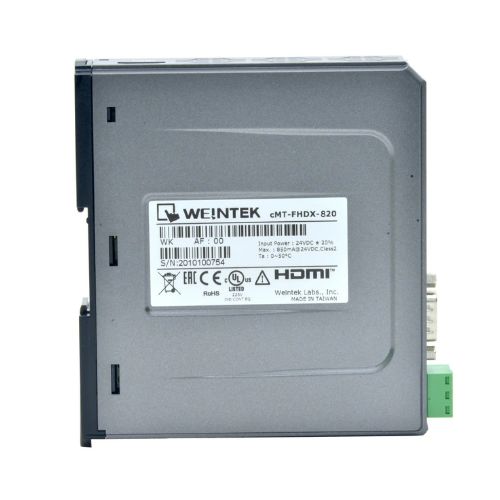The Weintek cMT-FHDX-820 is an advanced HDMI-enabled HMI gateway designed to seamlessly integrate with industrial automation systems. Featuring a Full HD (1080p) HDMI output, this unit allows you to connect directly to large screens or monitors for real-time data visualization.
